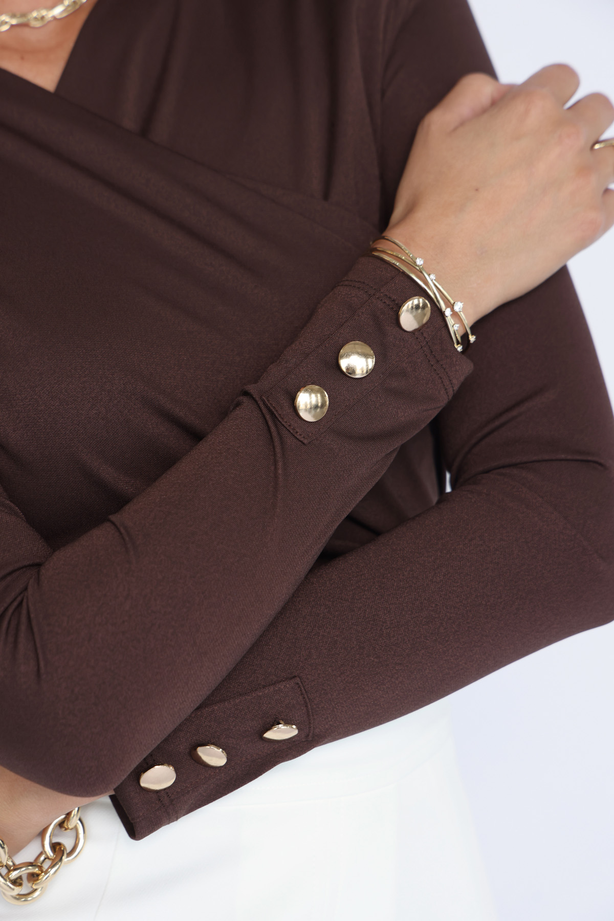 חולצת מעטפת עם קשירה מחטבת גוון בראון (60)