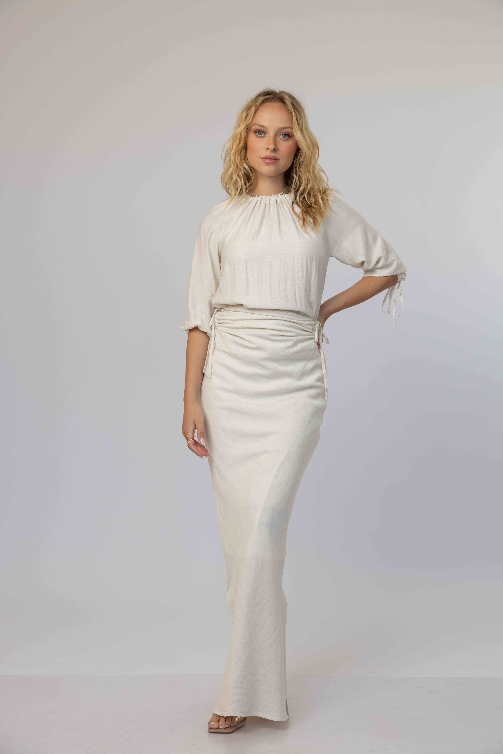 *אופציות לבישה – ניתן לשלב את הלוק עם חצאית פשתן צרה / מתרחבת הקיימות באתר מאותו בד.