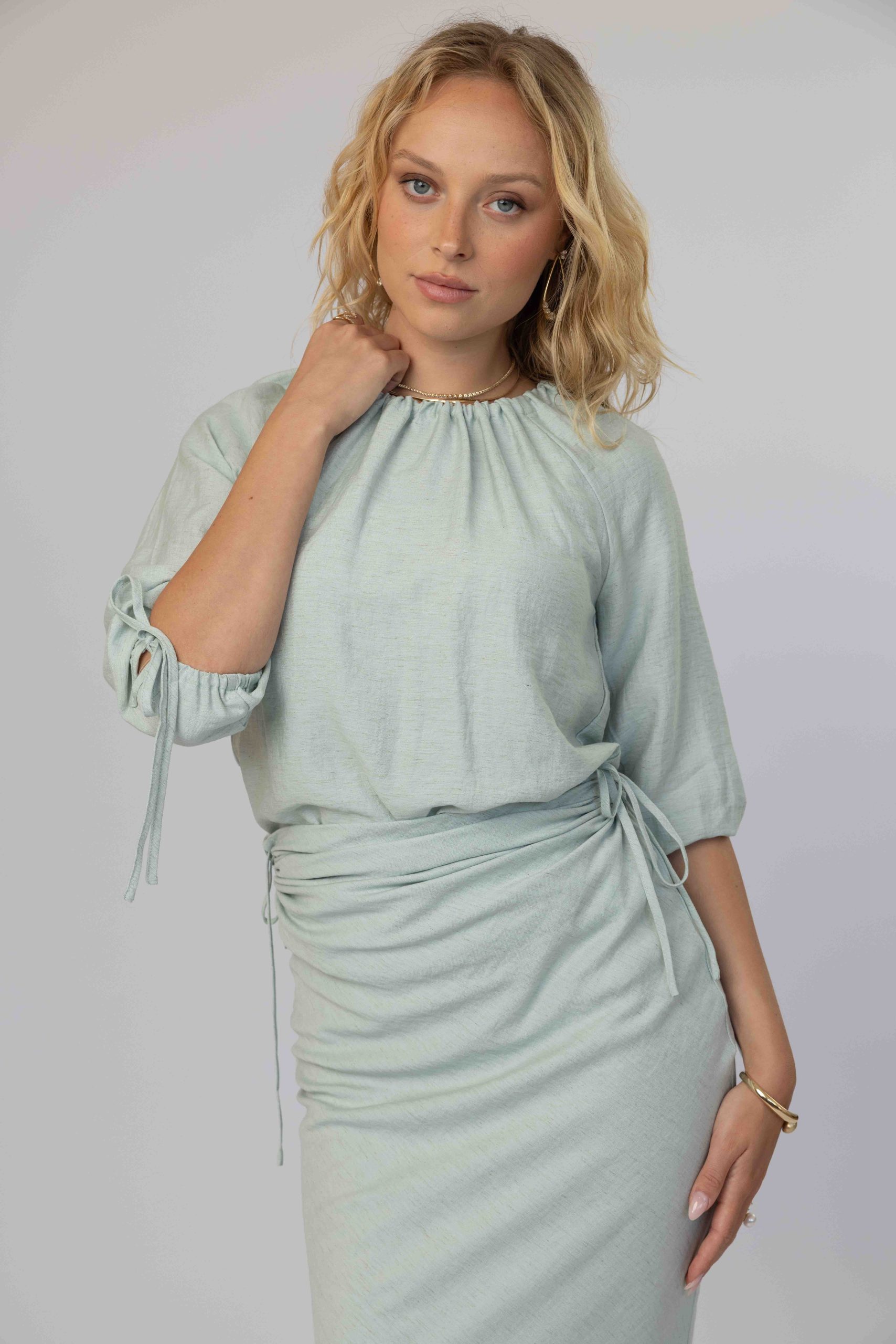 *אופציות לבישה – ניתן לשלב את הלוק עם חצאית פשתן צרה / מתרחבת הקיימות באתר מאותו בד.