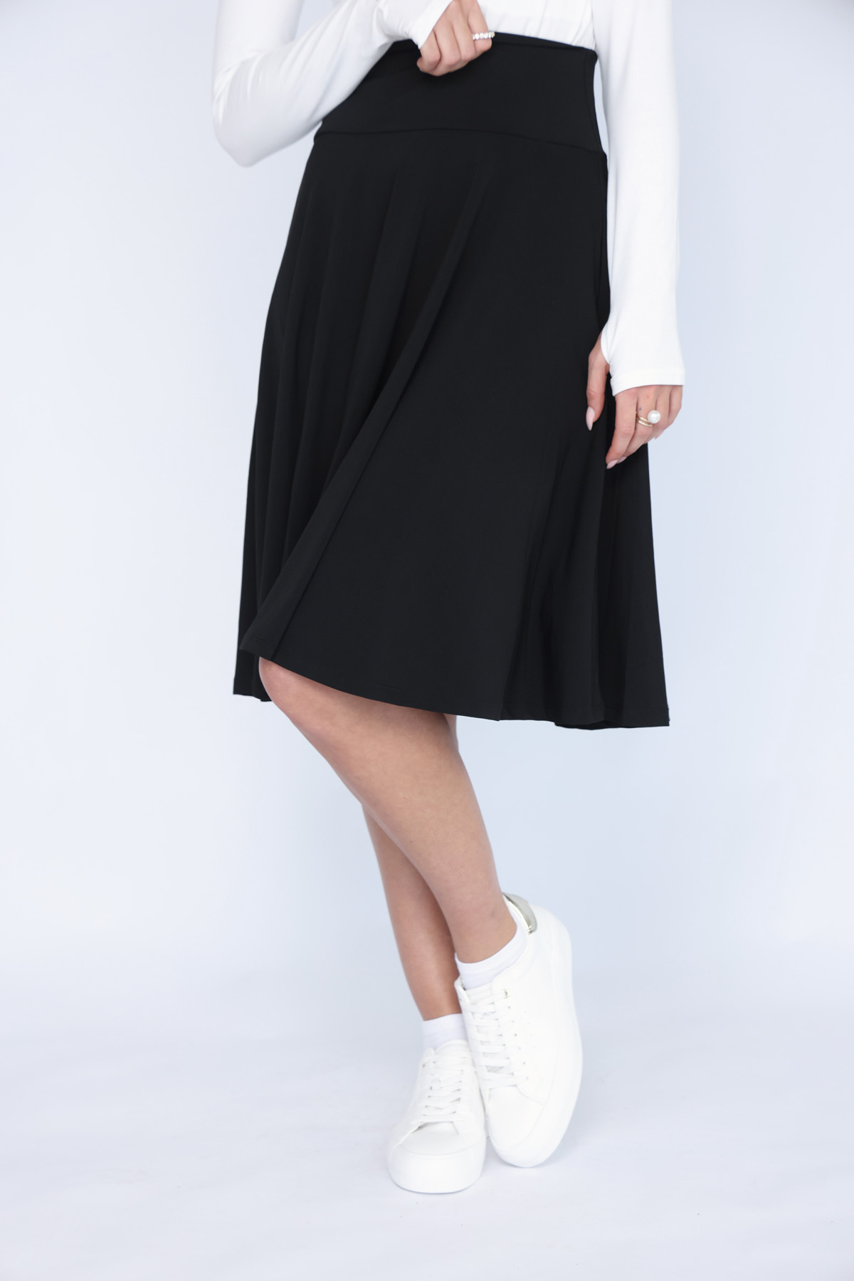 חצאית לייקרה בגזרה מתרחבת עשירה גוון שחור (59)