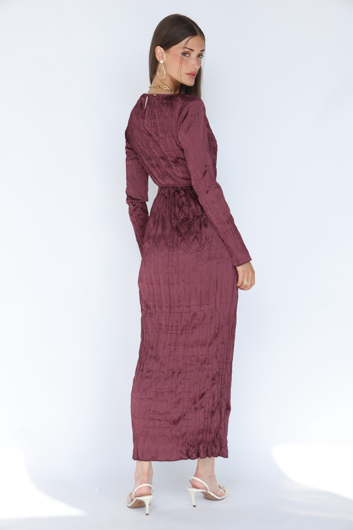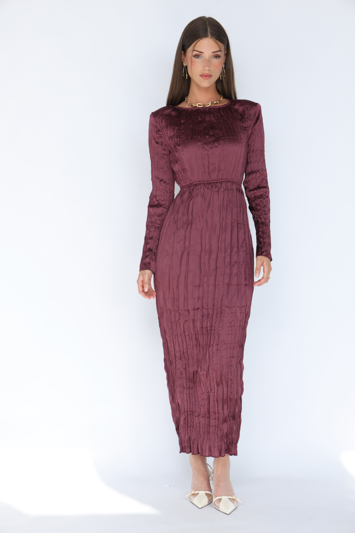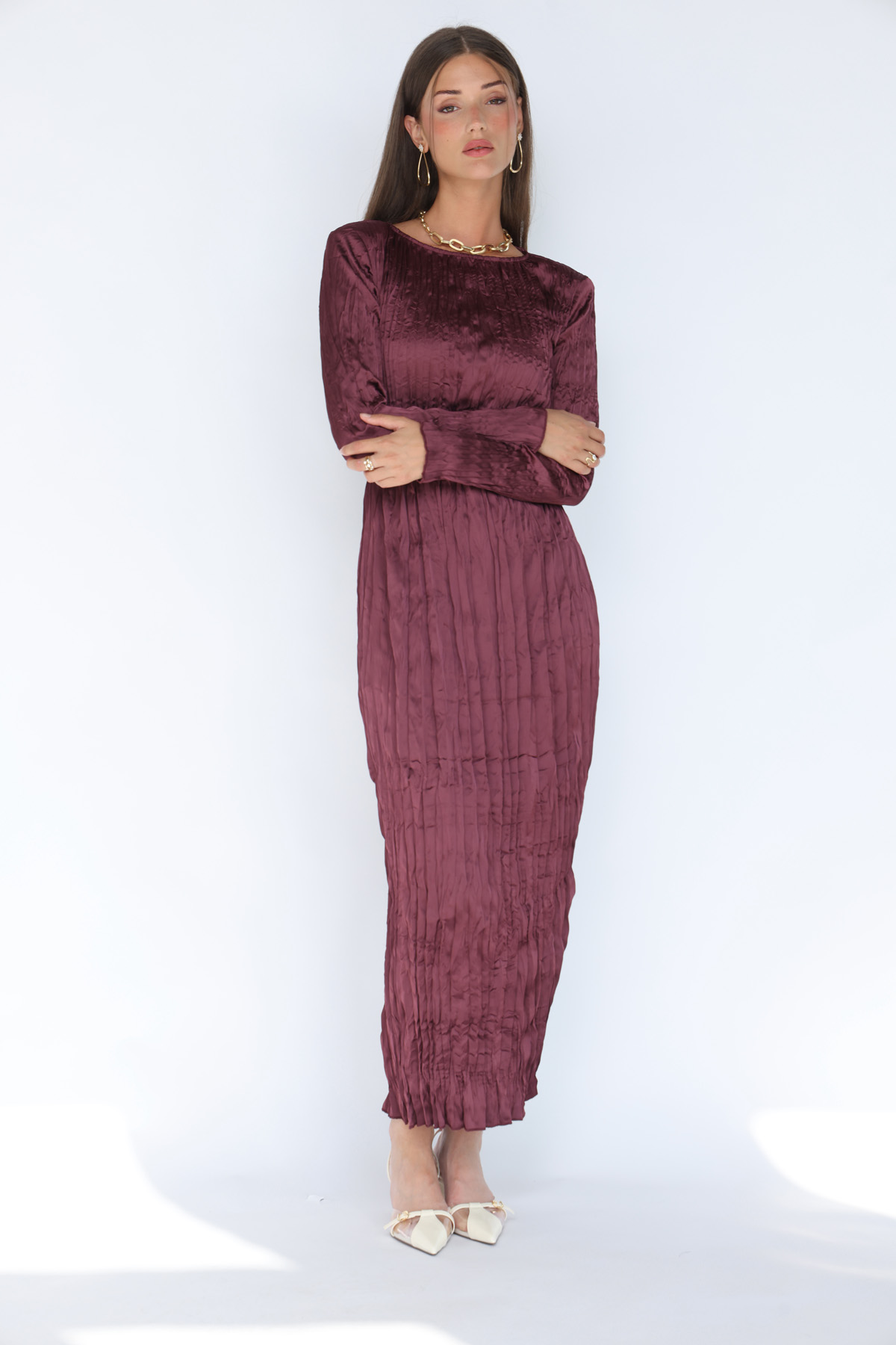 שמלת פליסה בטקסטורת קמט גוון סגול-בראון (35)