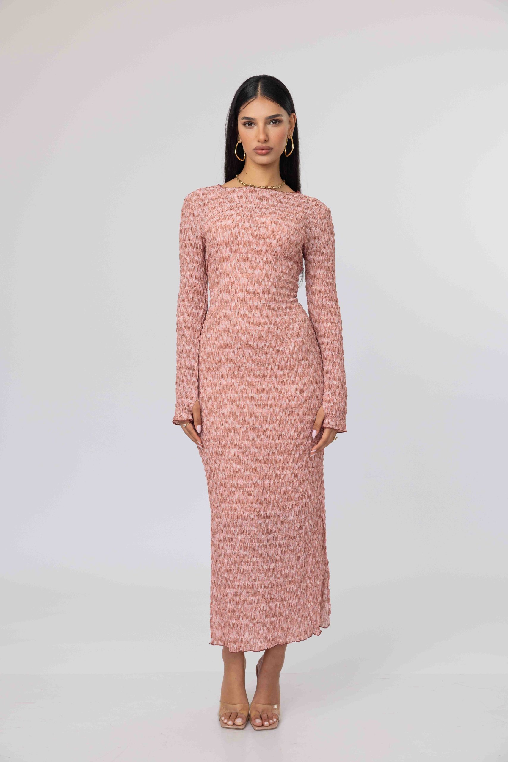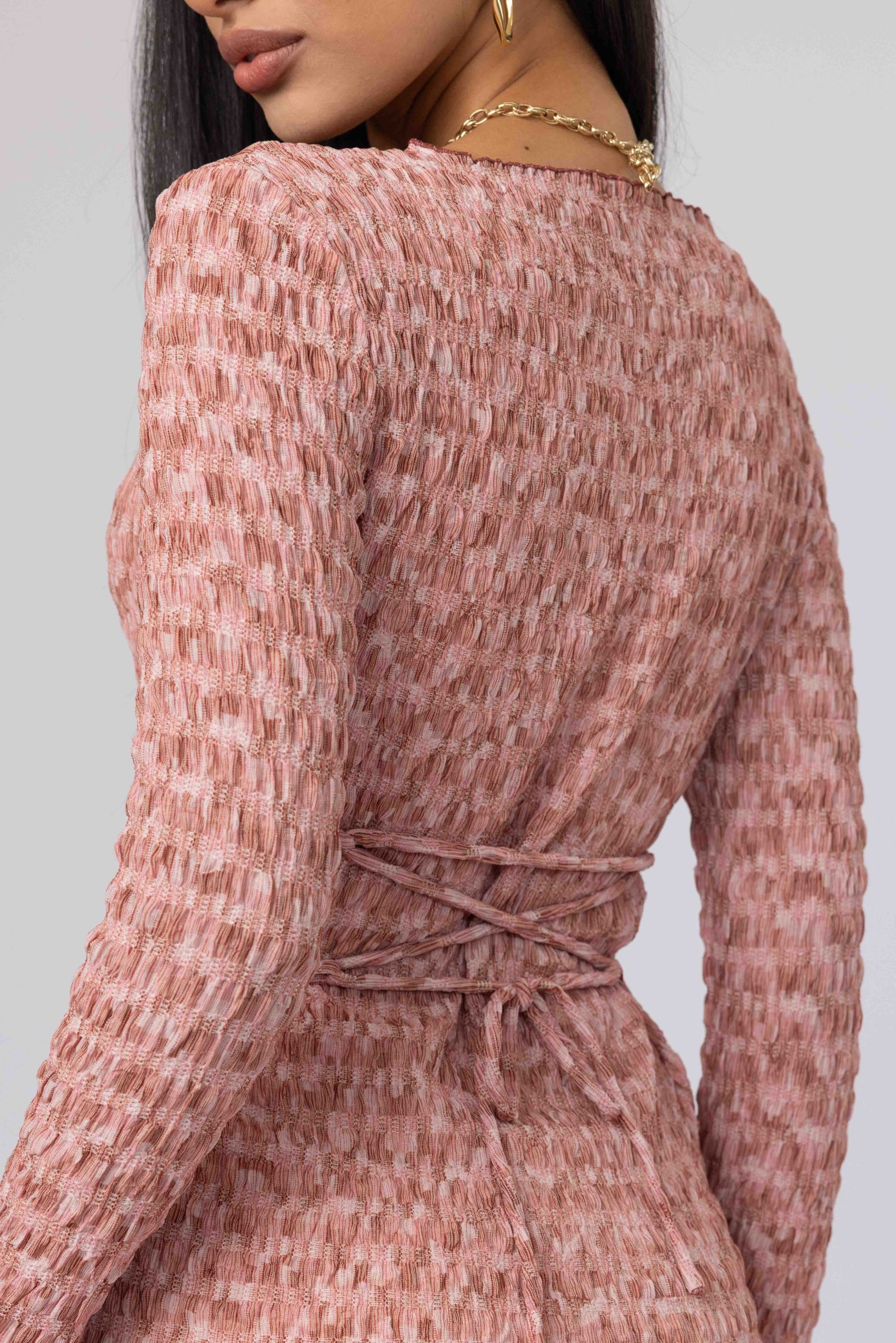 שמלת פסיפס בגיזרה ישרה עם פתחי צד וקשירת מחוך אחורית גוון ורוד (32)