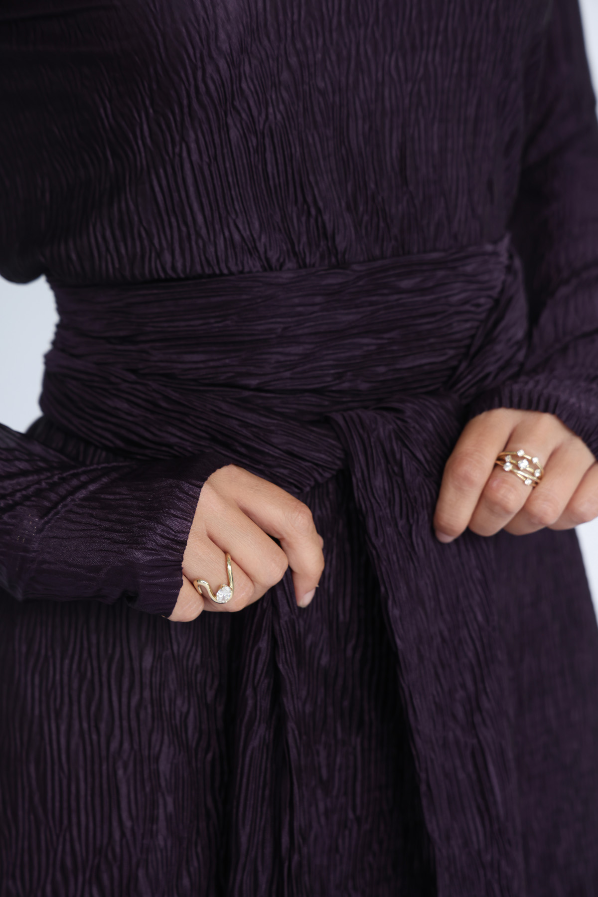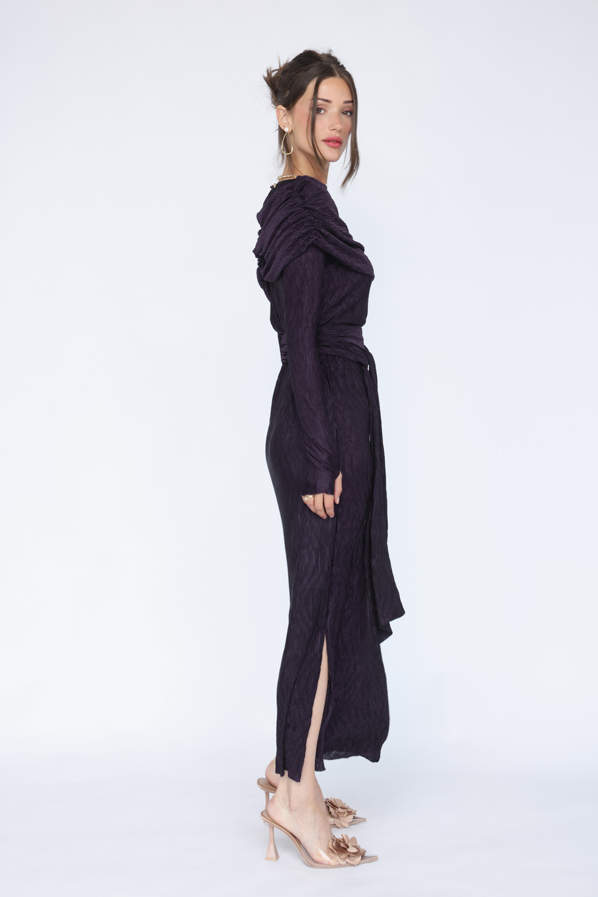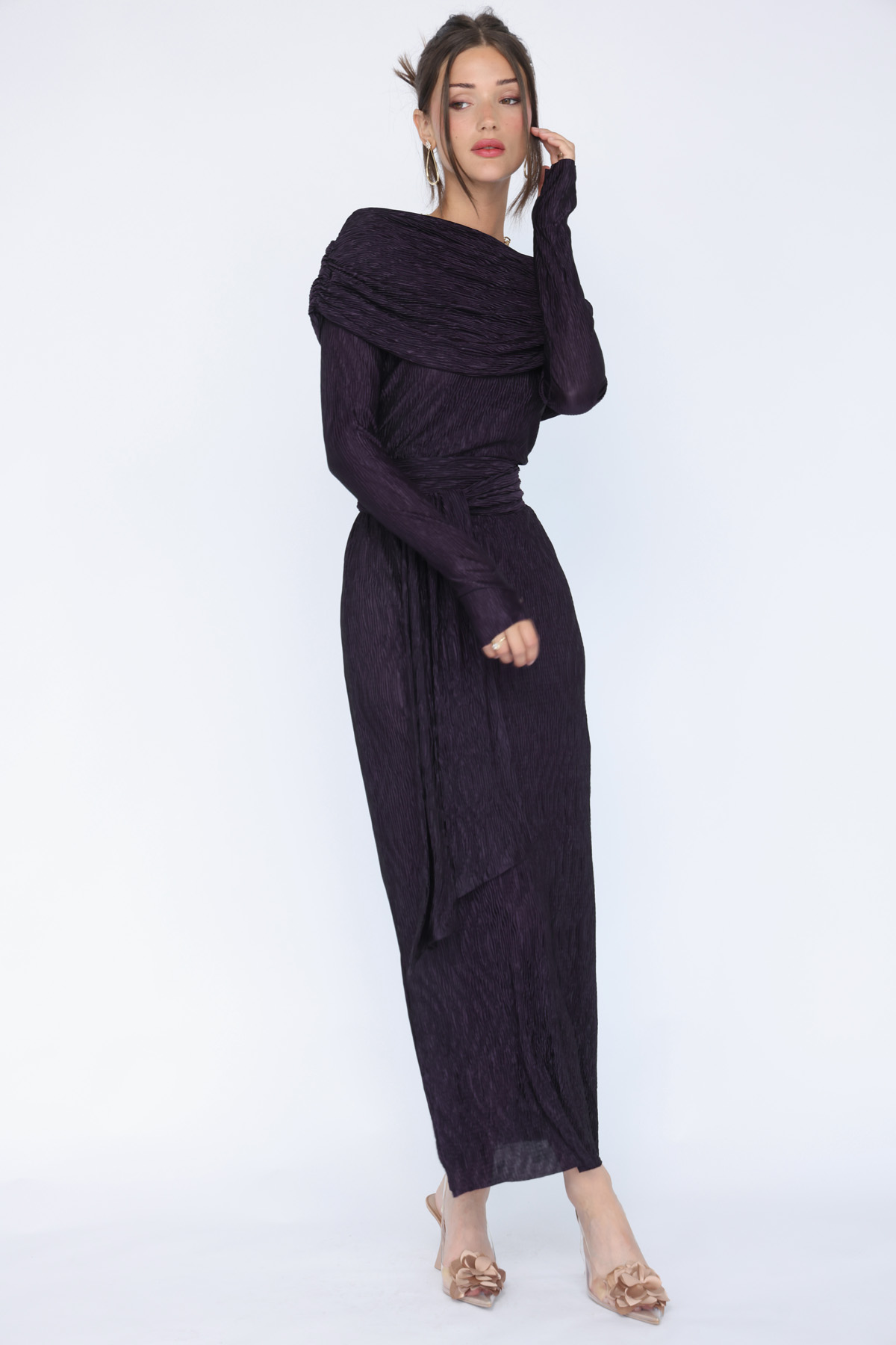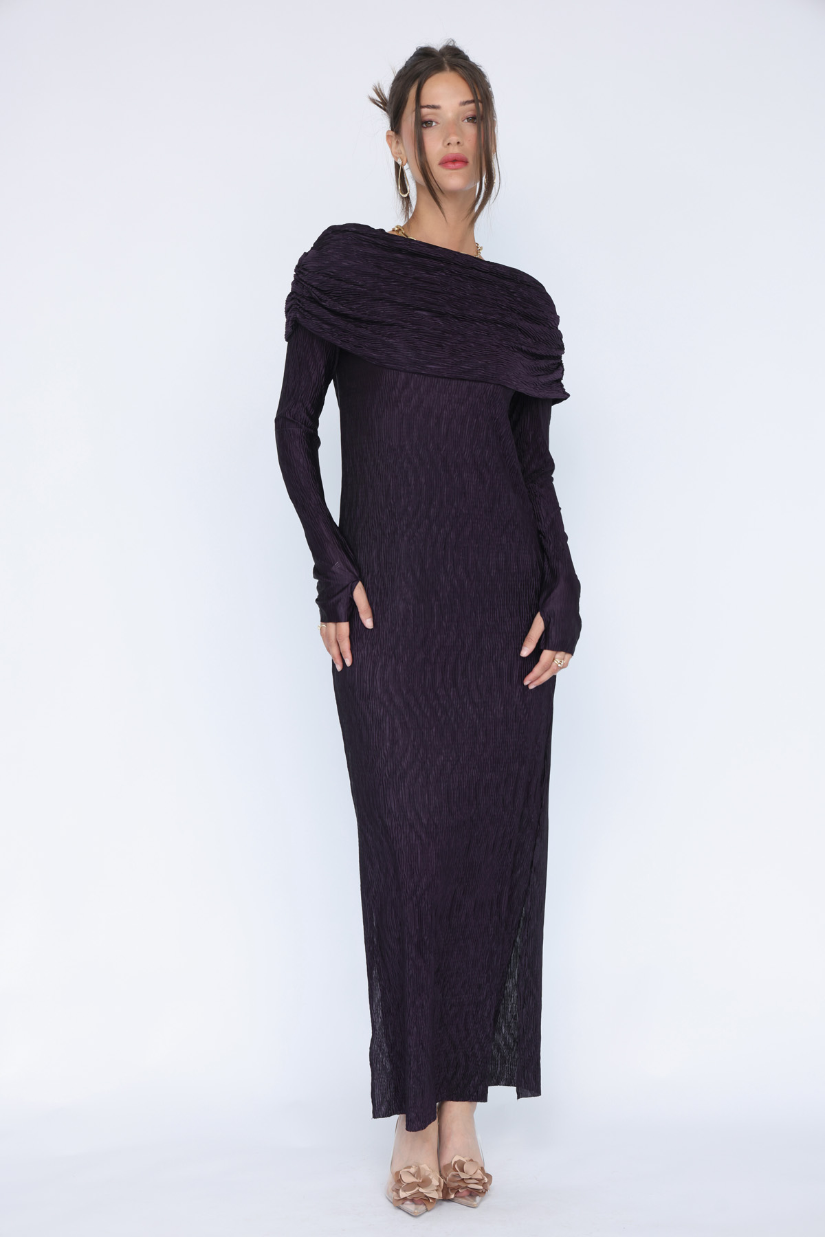 שמלת CAPE פליסה מקסי עם פתחי צד גוון סגול כהה (58)