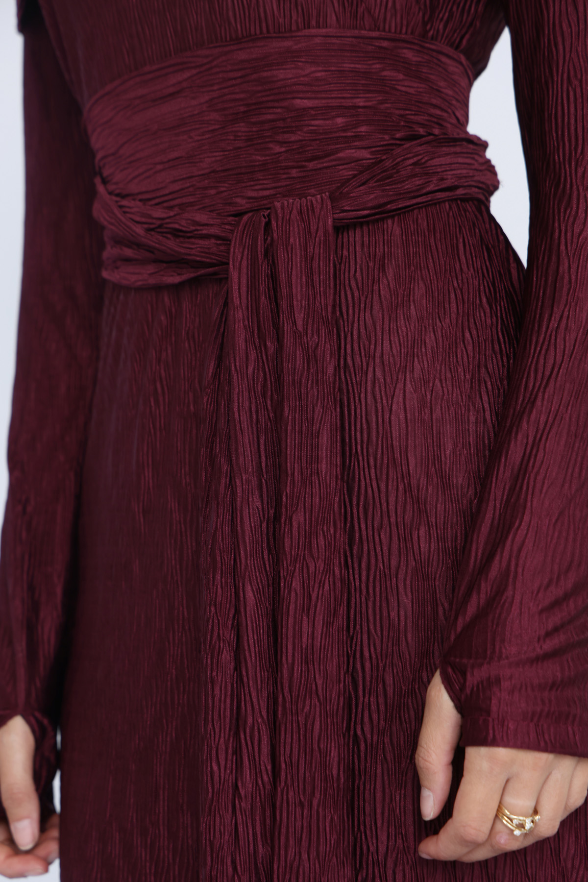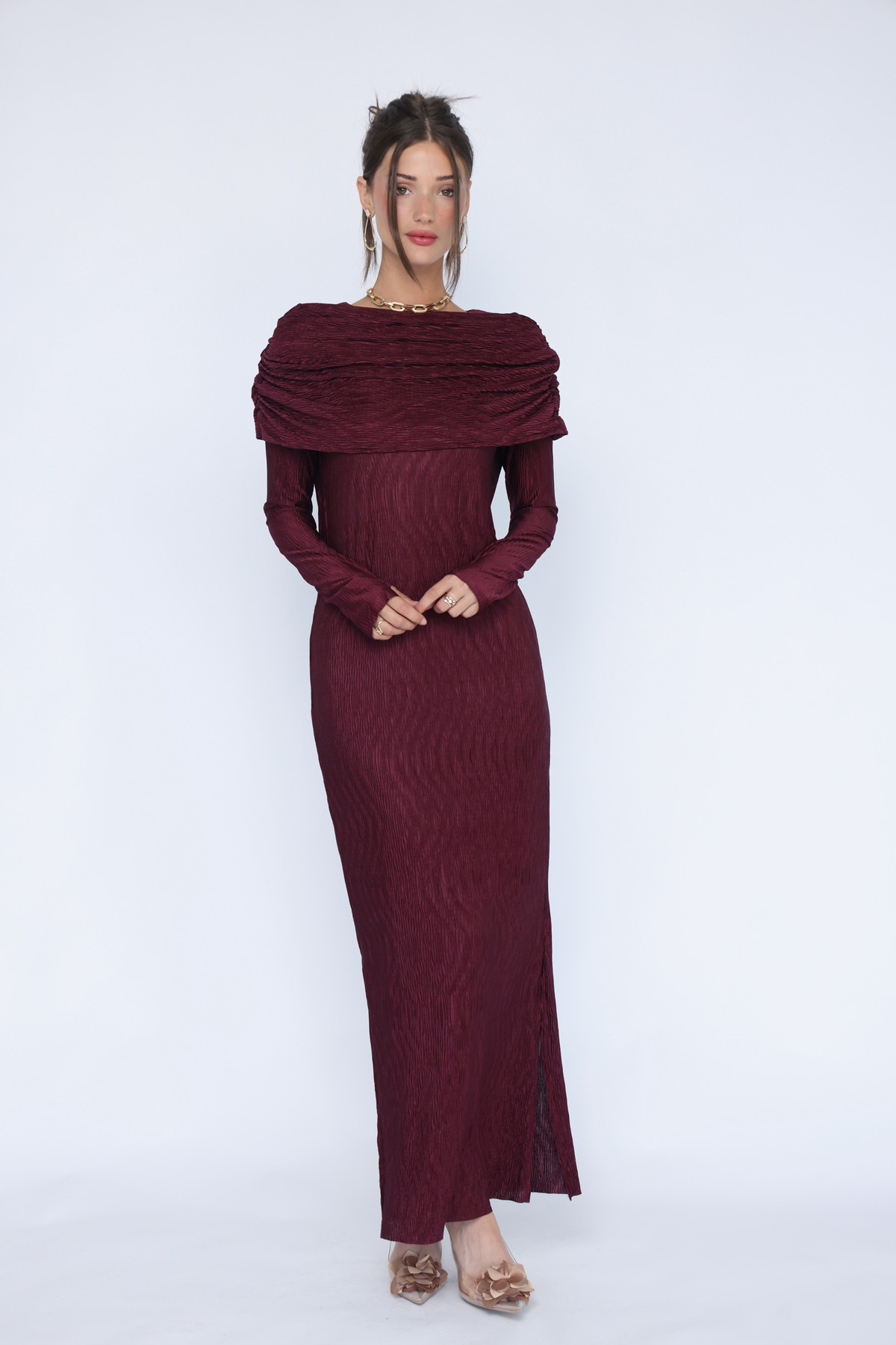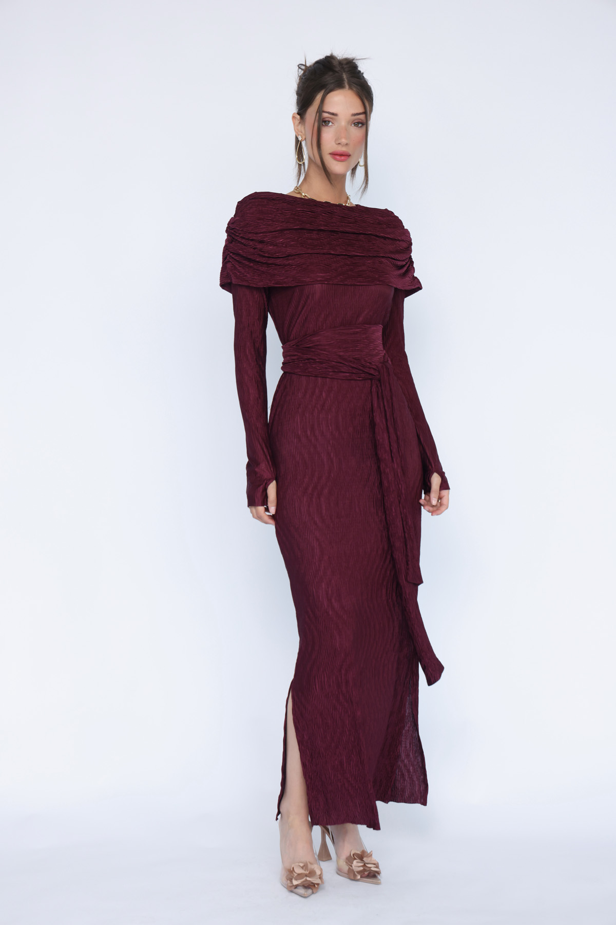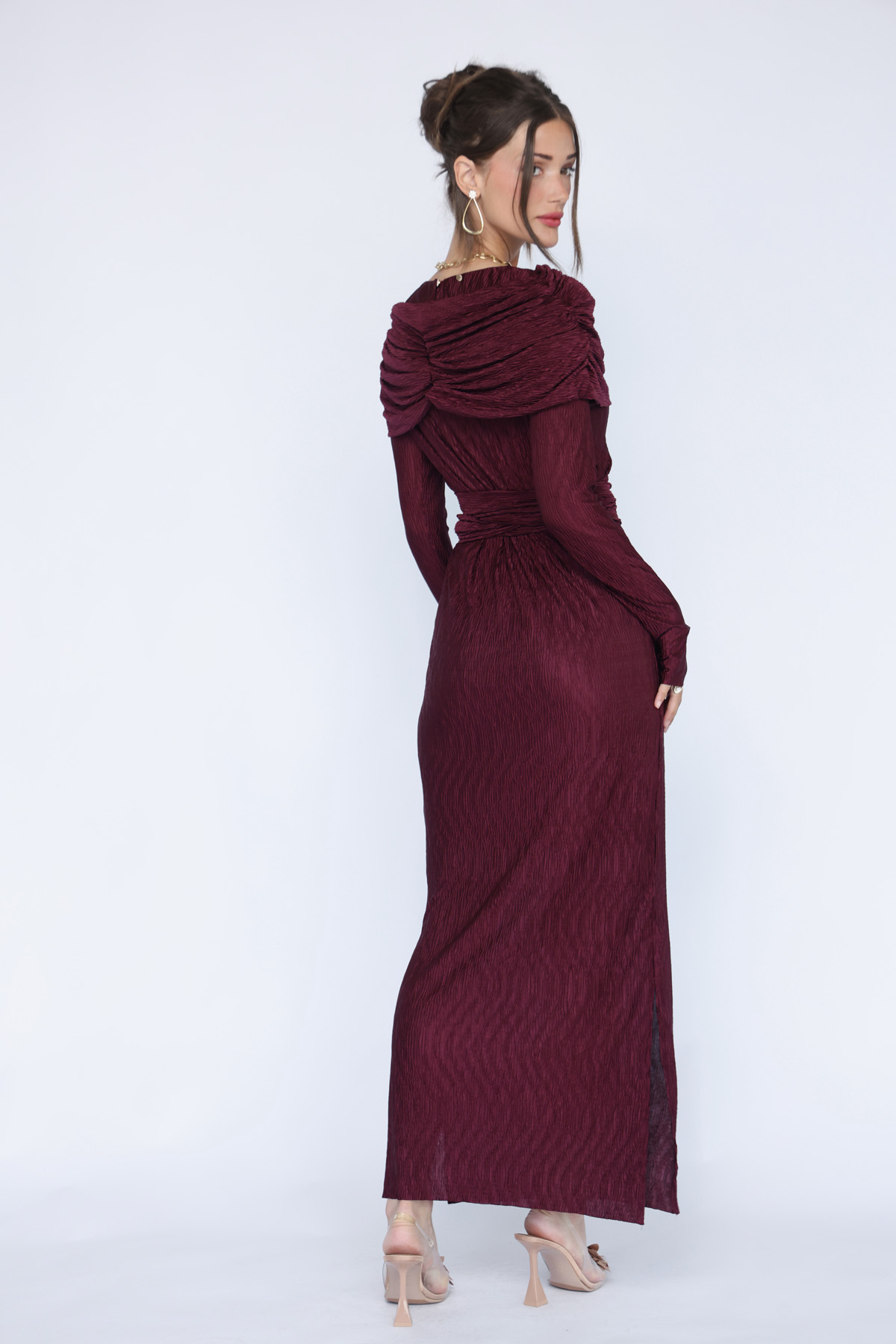 שמלת CAPE פליסה מקסי עם פתחי צד גוון בורדו (58)